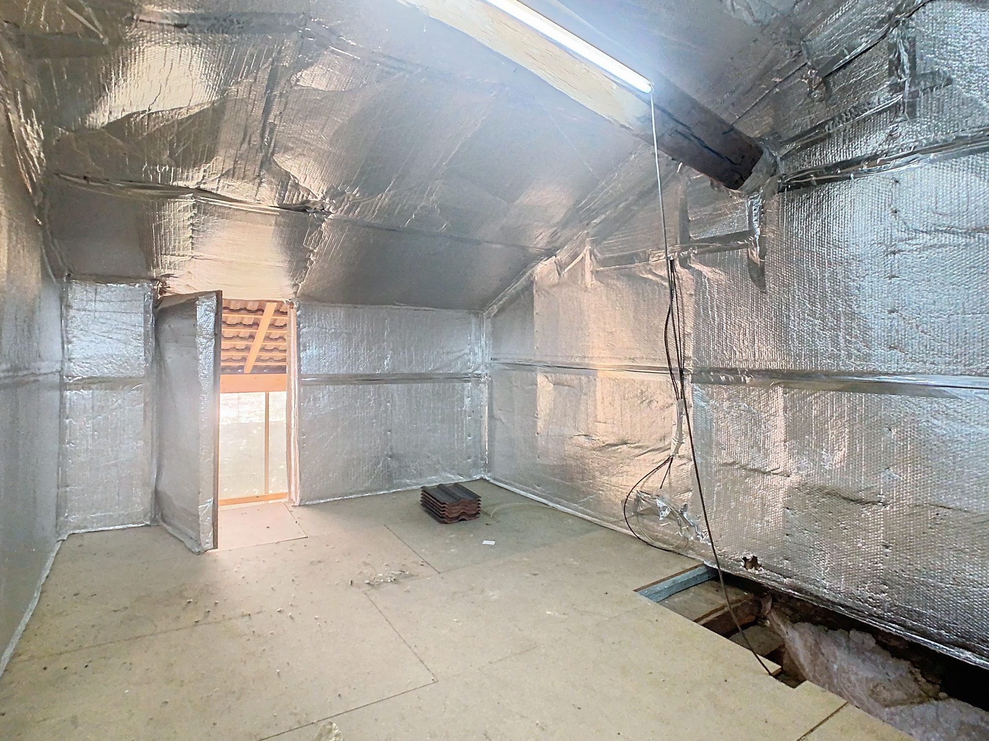 Au rez-de-chaussée, une véranda posée en 2024, une cuisine aménagée ouverte sur un séjour et une salle d'eau avec toilette (sanibroyeur). À l'étage, un petit palier, un bureau et une chambre en enfilade et une petite cours fermée avec jardinet attenant. Grenier aménageable au-dessus, isolé au sol et en sous toiture (ouverture existante).