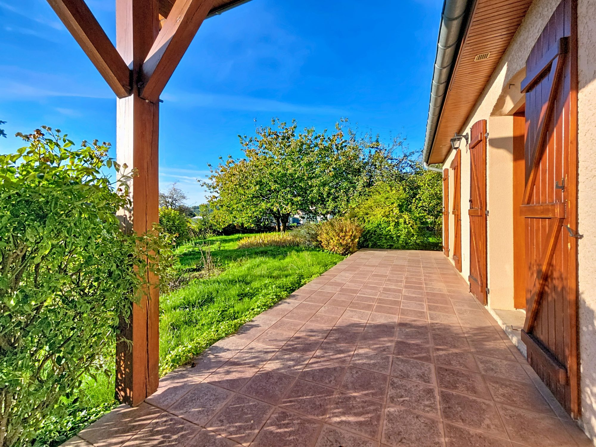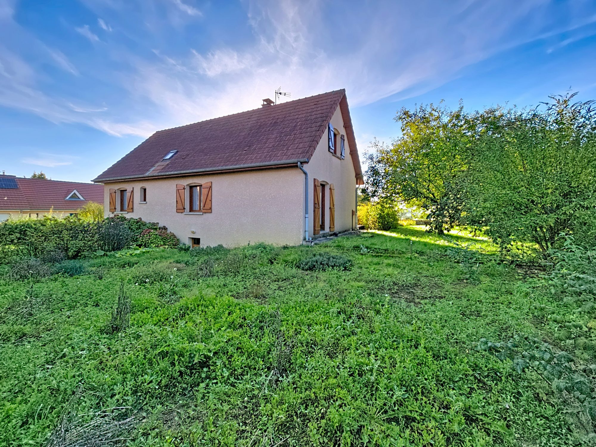 A l’extérieur, vous disposerez d’un grand jardin avec arbres fruitiers et d’une belle terrasse exposée Sud-Est avec vue sur la campagne environnante, idéale pour profitez des beaux jours entre amis ou en famille.