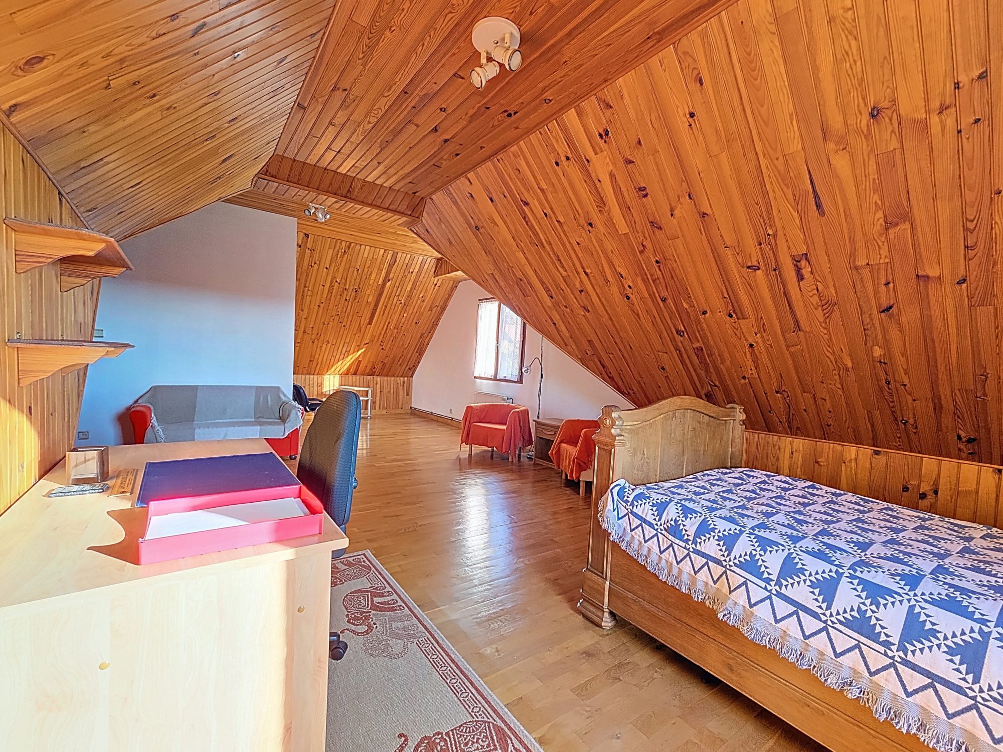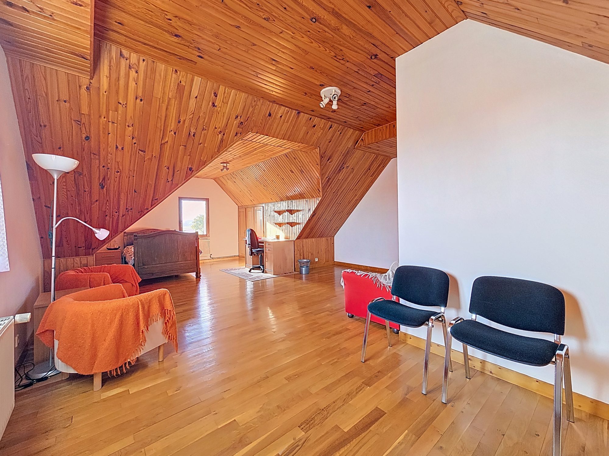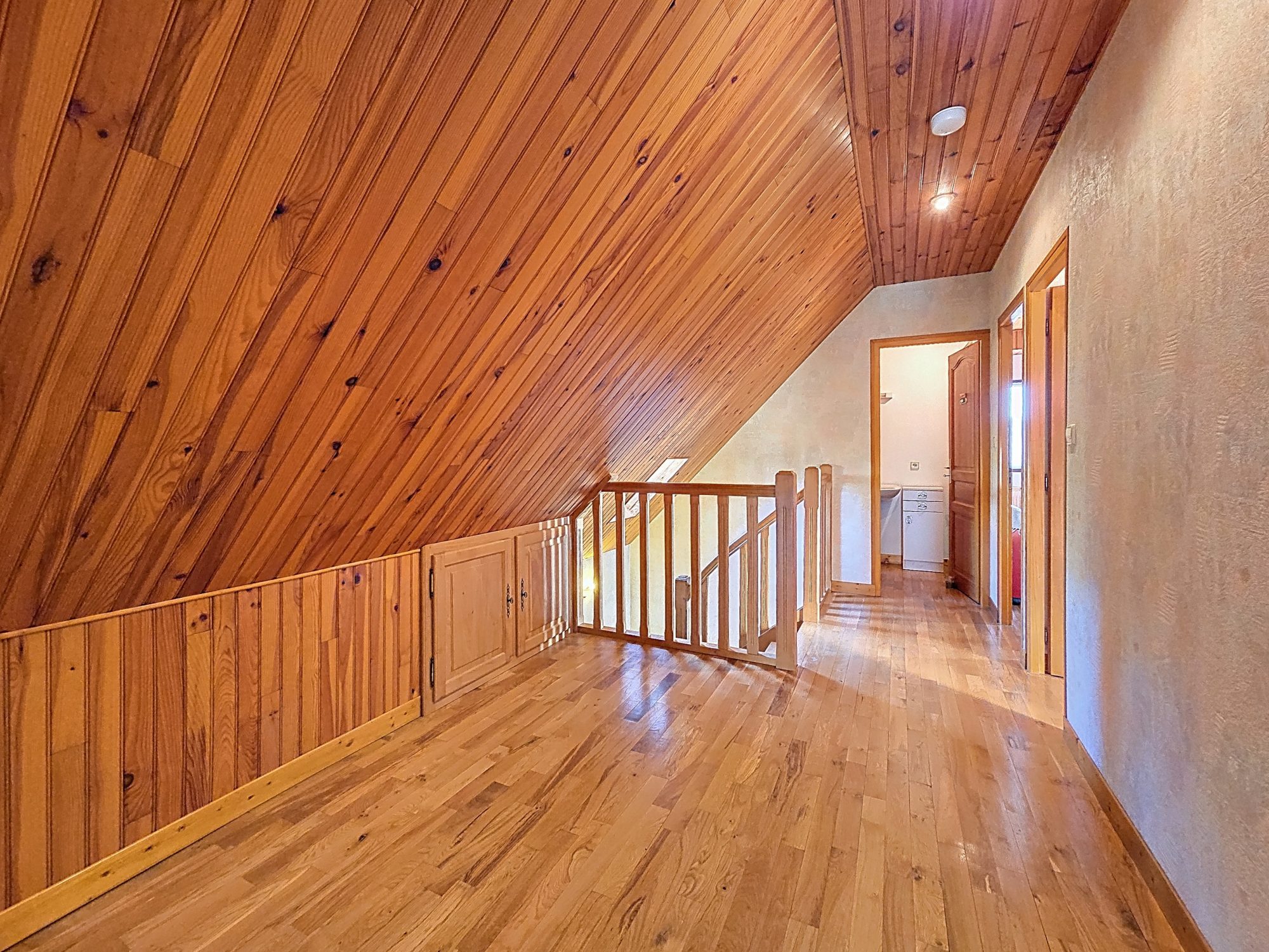 À l'étage, un vaste palier, un toilette et trois chambres confortables vous attendent.