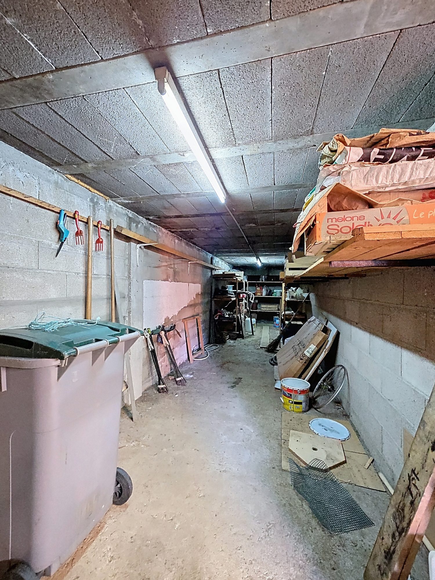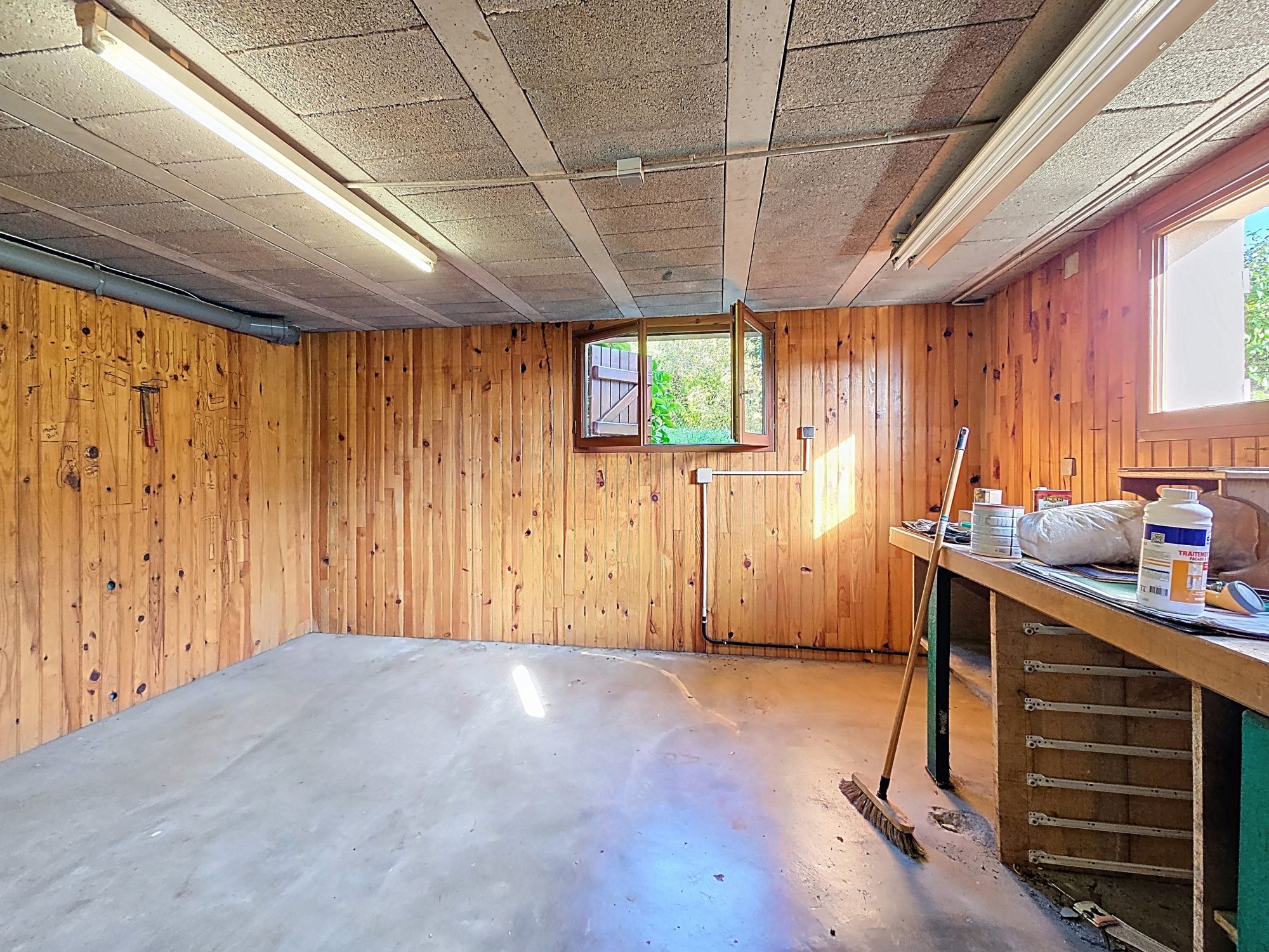Le sous-sol, atout non négligeable, dispose d’un vaste garage de 50 m2, d’un atelier, d’une cave, d’une grande pièce de stockage et d’une buanderie/chaufferie avec accès direct au jardin.
