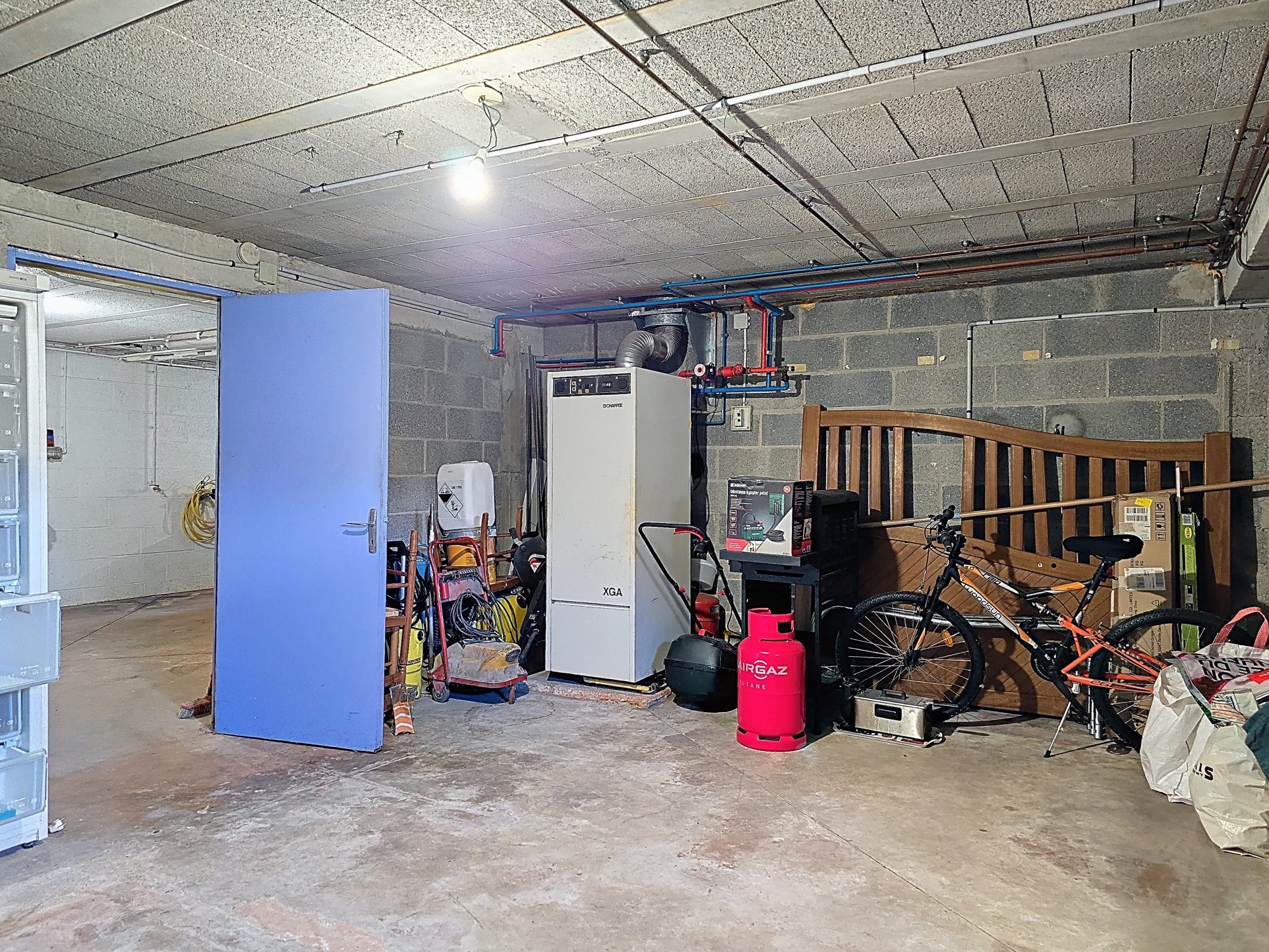 Quant au sous-sol, il offre un vaste espace de rangement supplémentaire. Il se compose d’un double garage avec fosse et coin atelier, d’une buanderie/chaufferie et d’un toilette.
